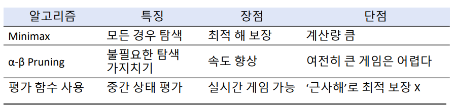 • 두 명 이상의 플레이어가 교대로 움직이는 환경에서, 최적의 수를 찾는 탐색 과정